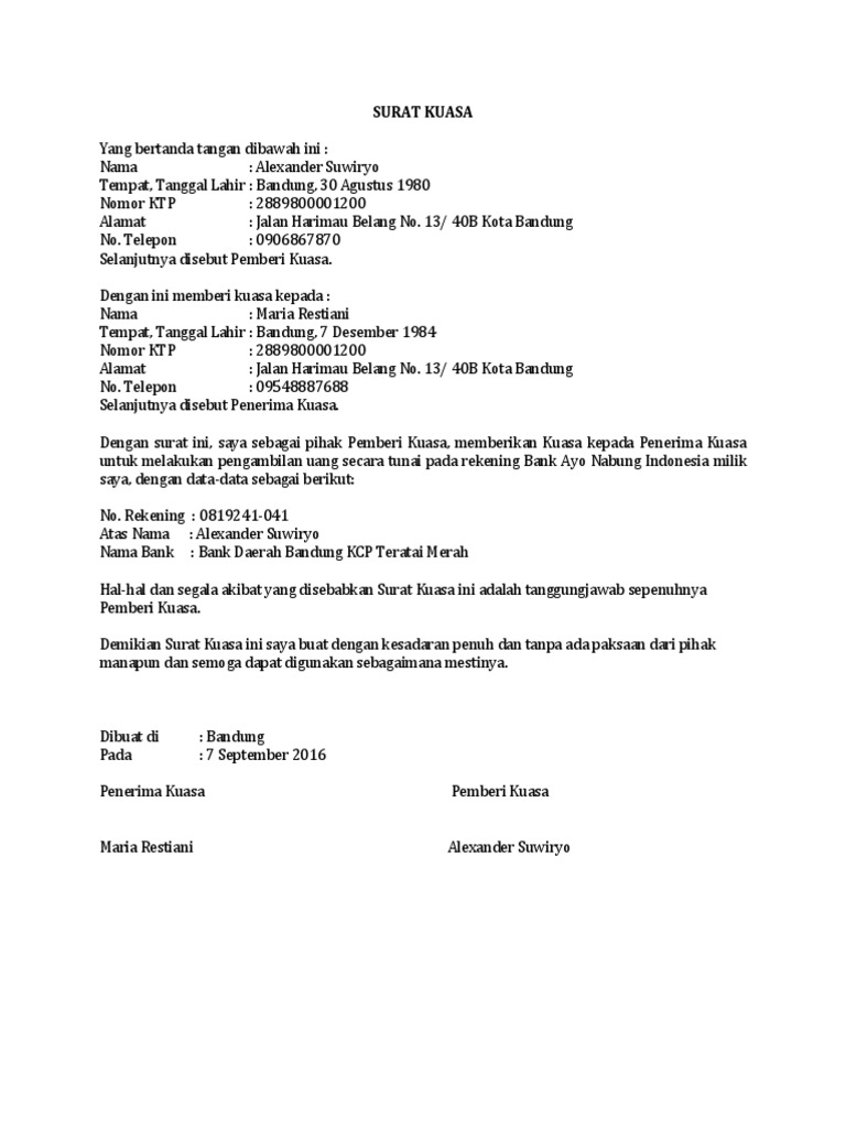 Contoh Surat Kuasa Referensi Bank – Backup Gambar