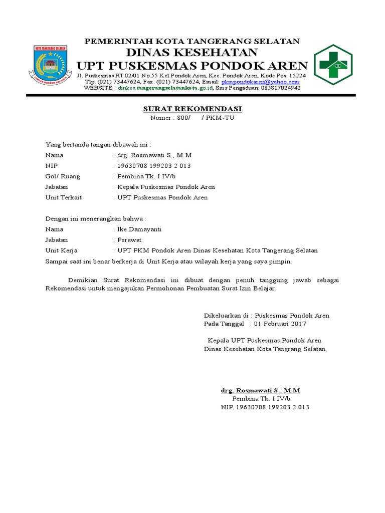 Surat Rekomendasi Ijin Belajar